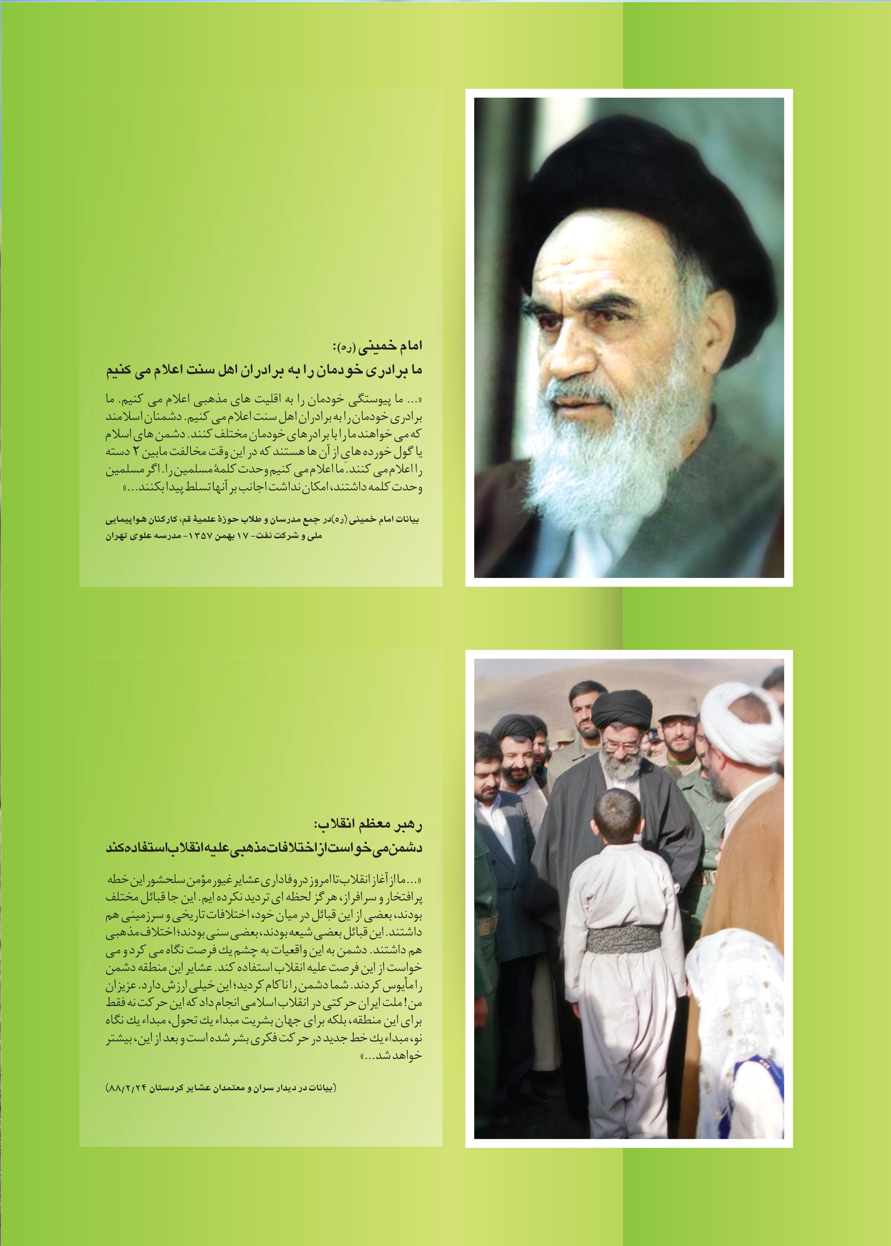 باز هم دو تا عکس با کیفیت از صحبتهای رهبری و امام در مورد برادران و شهدای عزیز اهل سنت. امیدوارم استفاده کنید.